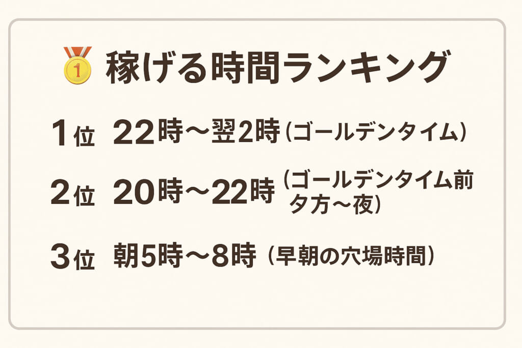 1.稼げる時間帯ランキングと効率的な働き方