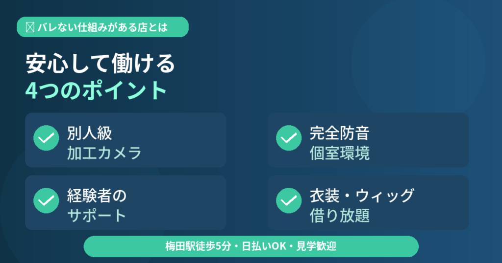 この記事で見てきたとおり、 顔バレのリスクはお店の仕組み次第で 大幅にコントロールできます。