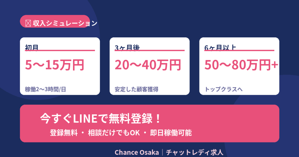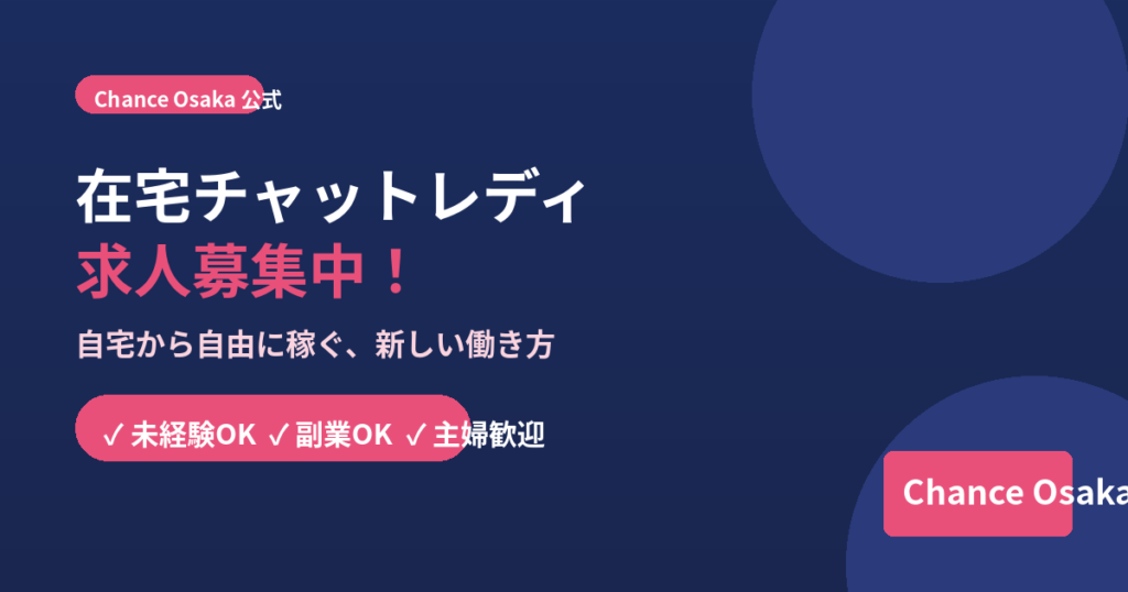 この記事では、在宅チャットレディの仕事内容や収入の仕組み、そしてChance Osakaが多くの女性に選ばれている理由を詳しくご紹介します。